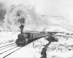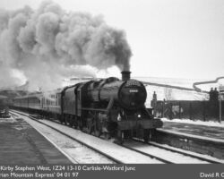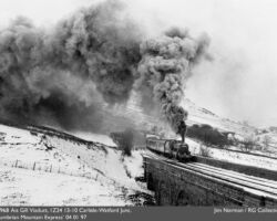 The black smoke made by 2968’s determined climb to Ais Gill summit (Milepost 261½) passed at a creditable 26½mph contrasted nicely with the pristine whiteness of the snow. Her progress down the West Coast Main Line to Crewe brought a maximum of 67mph and arrival at Crewe was four minutes early!
