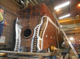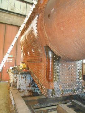 2968’s boiler has undergone Non-destructive testing using ultra sound which is why some of the boiler looks wet. The engineer was using the same kind of gel that is used on pregnant women when they have a scan. White parts on the boiler show which parts have been checked. The outcome of this process is data which the boiler shop management will use when they decide what work needs carrying out on the boiler.