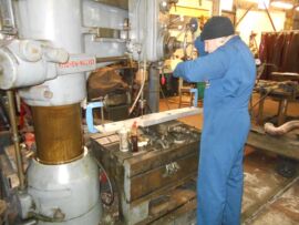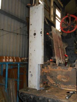Another selection of pictures from Bridgnorth featuring work being carried out over the last two or three weeks. The bulk of them show the repairs which have been carried out on the left hand cab door mounting panel. The original angle iron was seriously rusted and somewhat bent (as seen in the photos especially when compared with the new angle) whilst the big panel was just bent. That has been straightened out and a new single piece of angle iron cut, drilled and painted to replace the life expired originals. A new nut and washers have also been made for the bottom of the hand rail. The right hand cylinder is showing off the start of its new coat of silver paint.