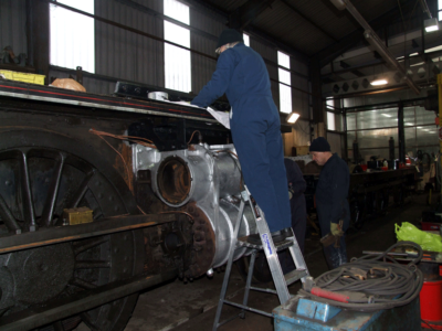 Painting, of course, continues, today on the cylinder. We decided on a change from the usual grey or black and this time chose silver. The Right Hand side was done this week, the Left Hand cylinder will receive attention next week.