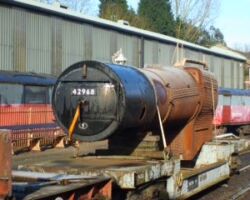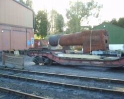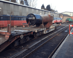 42968’s boiler has been brought down from the Up headshunt to outside the northern end of the boiler shop, where SVR volunteers can continue the work started by the Fund’s own working parties in preparation for its entering the shop itself later this year, when the serious work by the SVR staff can begin.